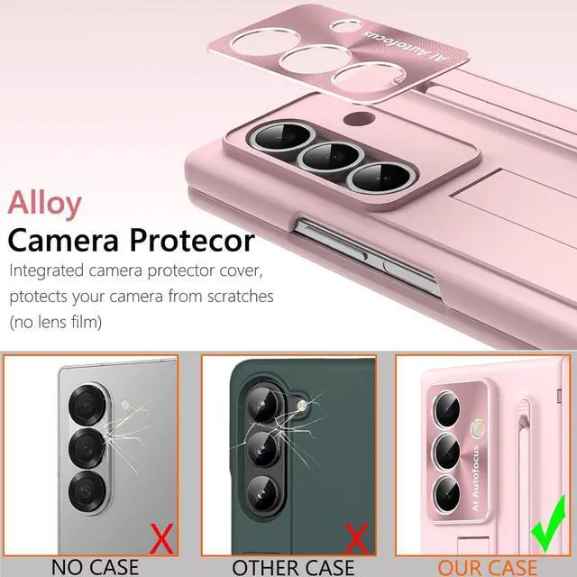 NOTE: Not includes the Offical S PenBuilt in Screen Protector & Camera Protector 1. Our Z Fold 7 case with s pen holder is built in Front Screen Protector 9H Hardness Tempered Glass prevents your z fold 7 screen from scratches and damage by the key or other things. Ultra-thin and high transparency keeping original visual and touch experience for you; 2. Alloy cCamera Protector covers the camera part (no lens film) excellent scratch-resistat. The raised lips around screen & camera prevent scratches when placed flatIntegrated Hinge Cover & kickstand 1. The z fold 7 full body case built in Integrated Hinge Cover connects with the back cover it can't be remove durable and stable excellent scratch-resistant and shockproof; Spring design the hinge cover will automatically bounce back our z fold 7 s pen slot case provides a 360° protection in your daily life; 2. Built in a kickstand on back cover frees your hand convenient for reading watching movies and face-to-face chatting with friendsSkin-friendly PC Material Our z fold 7 stand case crafted from durable polycarbonate with a? silky-smooth skin-friendly coating.? Experience luxurious comfort that feels incredible in your hand you won't want to put it down.