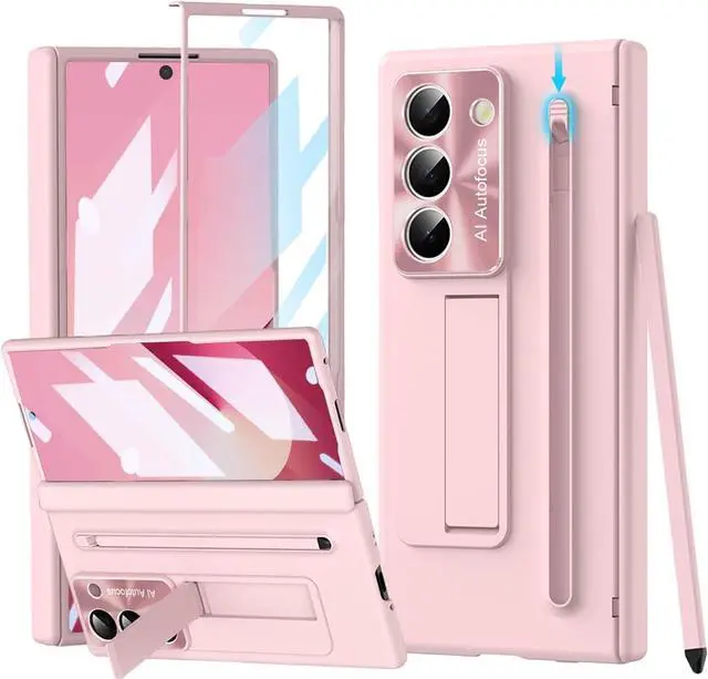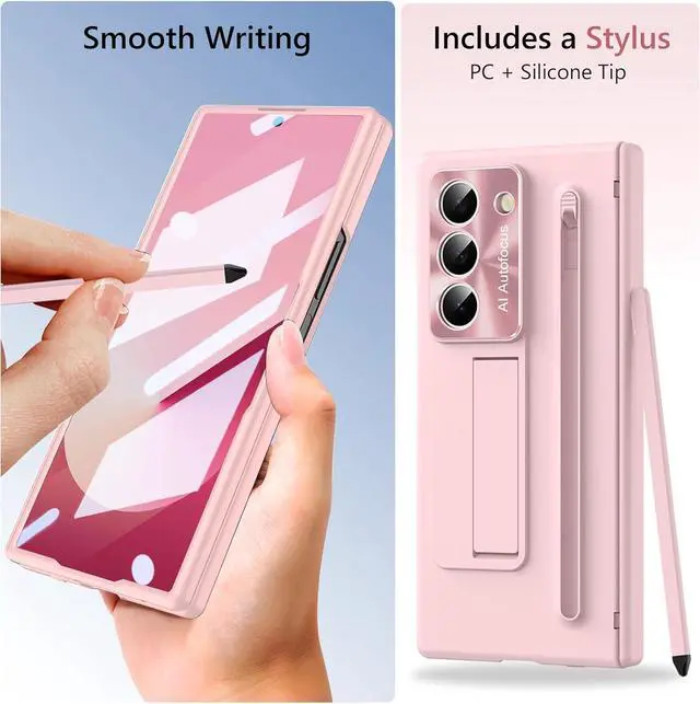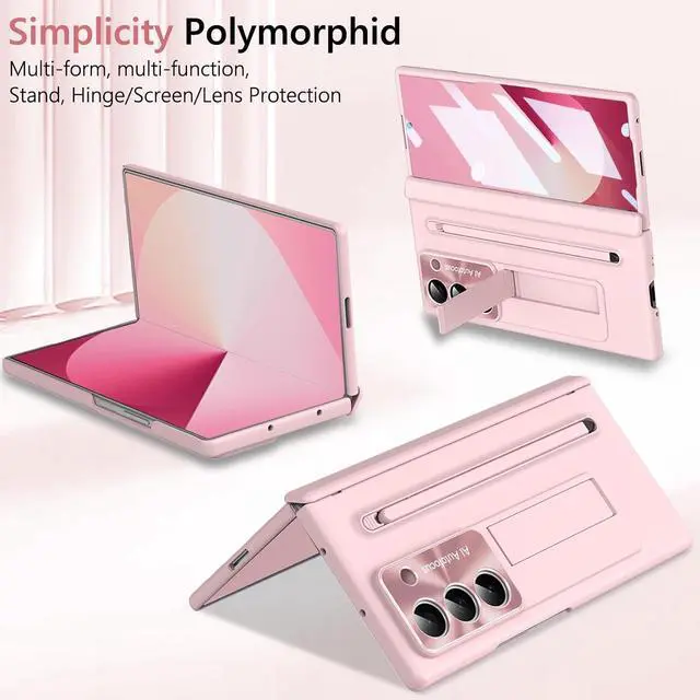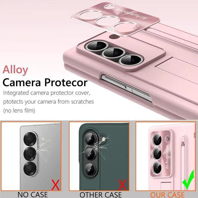 NOTE: Not includes the Offical S PenBuilt in Screen Protector & Camera Protector 1. Our Z Fold 6 case with s pen holder is built in Front Screen Protector 9H Hardness Tempered Glass prevents your z fold 6 screen from scratches and damage by the key or other things. Ultra-thin and high transparency keeping original visual and touch experience for you; 2. Alloy cCamera Protector covers the camera part (no lens film) excellent scratch-resistat. The raised lips around screen & camera prevent scratches when placed flatIntegrated Hinge Cover & kickstand 1. The z fold 6 full body case built in Integrated Hinge Cover connects with the back cover it can't be remove durable and stable excellent scratch-resistant and shockproof; Spring design the hinge cover will automatically bounce back our z fold 6 s pen slot case provides a 360° protection in your daily life; 2. Built in a kickstand on back cover frees your hand convenient for reading watching movies and face-to-face chatting with friendsSkin-friendly PC Material Our z fold 6 stand case crafted from durable polycarbonate with a? silky-smooth skin-friendly coating.? Experience luxurious comfort that feels incredible in your hand you won't want to put it down.
