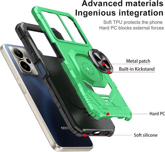 Compatible - Design for Cricket Outlast 5G 2024 / AT&T Motivate Pro 5G( 6.75 inches Released 2024) Android 14. Not for Cricket Outlast U680AC / AT&T Jetmore( 6.8 inches Released 2023). Military Grade Drop Tested - Cool army style heavy duty shock-proof Protective phone case. Unique edge and four corners with TPU bumpers is combined with the PC back dual-layer material to protect your phone from drops scratches and bumps. Reduce the risk of damage. 360 Degree Metal Rotating Ring Holder - Work with Magnetic Car Mount (NOT including car mount). Built-in metal magnetic sheet for stable adsorption which can be directly adsorbed to the magnetic car mount holder.