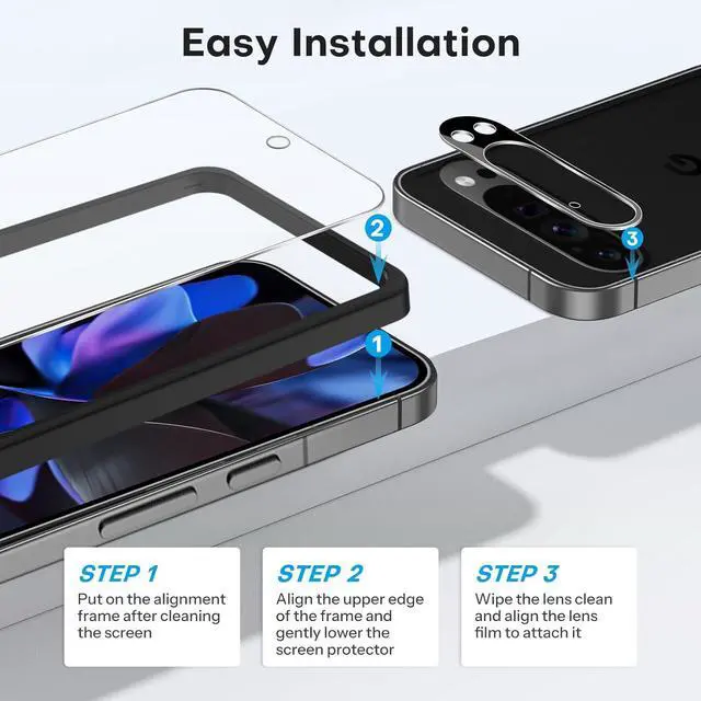 ProScratch Resistant: This Pixel 9 Pro XL screen protector and camera lens protector are made up of industry-grade 9H hardness tempered glass which can effectively protect the screen and camera from accidental scuffs and scratches by knife keys and other sharp objectsCamera