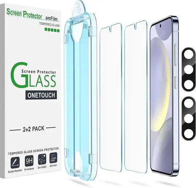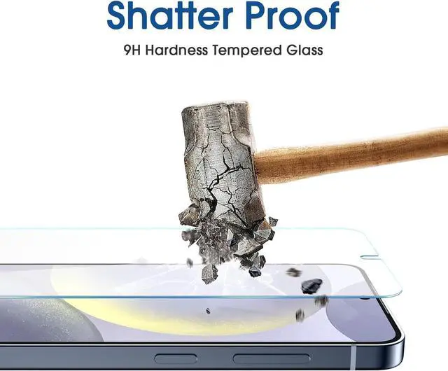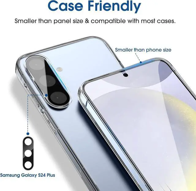 Shatterproof Preminium 9H+ Glass Galaxy S24 Plus 6.7 screen protectors are created from super scratch-resistant 9H hardness glass to protect your screen from scratches dust drops oil and fingerprint smudges. Anti-Fingerprint and Smudge-ProofamFilm screen protector for Galaxy S24 Plus 6.7 is finished with oleophobic coating to reduce fingerprints and provide ultra-clear high definition with 99.9 % transparency. 2+2 Pack 2* Galaxy S24 Plus 6.7 Screen Protectors 2* Camera Lens Protectors with 2 auto alignment tool kit (screen protectors come pre-installed in the auto alignment tool) and cleaning kits. Everything you need for a perfect installation!