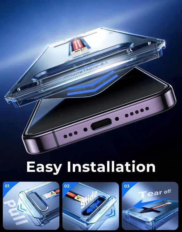 [Automatic Dust Removal Tech] Just cover and pull the screen protector automatically aligns and takes away the dust. No more worrying about bubbles and dust. Watch our Installation Video to see how easy it is to use our Dust-Elimination Installation Screen Protector. [28° Privacy Protection] Privacy tempered glass screen protector for iPhone 14 Pro 6.1 inch. Keep your information to yourself. Good choose when you are in the public occasions. [Speaker Dust Cover] The speaker dust cover has alloy material waterproof and dust-proof will not reduce the volume of the speaker. [Screen Protector Compatible with iPhone 14 Pro 6.1 inch] Specially designed ONLY for iPhone 14 Pro 100% touch accurate.