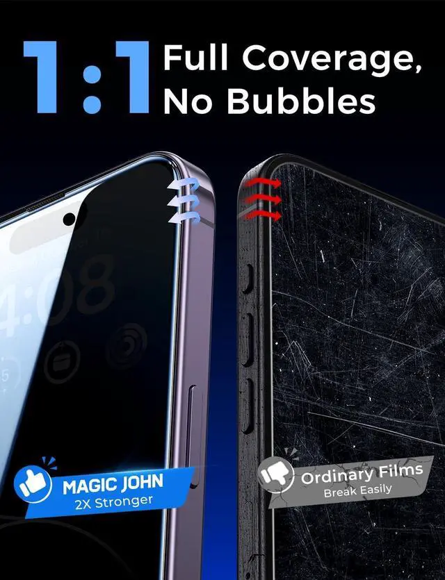 Not compatible with any other iPhone models. [Anti-Fingerprint] MAGIC JOHN privacy glass screen protector for iPhone 14 Pro 6.1 inch is finished with oleophobic coating to against oil residue from fingerprints from long-term use.