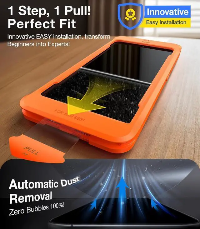 Thus UltraGlass builds a second tough screen for your Galaxy S25 Ultra.?? Industry NO. 1 Military-Grade ShatterproofAuthorized by the international Military Standard with 50+ rigorous engineering tests of 220 lbs impact 8 500+ drop tests 25 000+ scratch tests etc. its strength toughness and durability perform NO. 1 among all glass. By especially breaking the industry's record with a 12-foot drop the screen protector Galaxy S25 Ultra is ensured to be unbreakable from its surface to every edge and corner.?? 0 Bubbles + 0 Dust + 0 Misaligned =100% Successful Installation Includes everything you need with innovative automatic alignment dust removal and bubble-free technology.