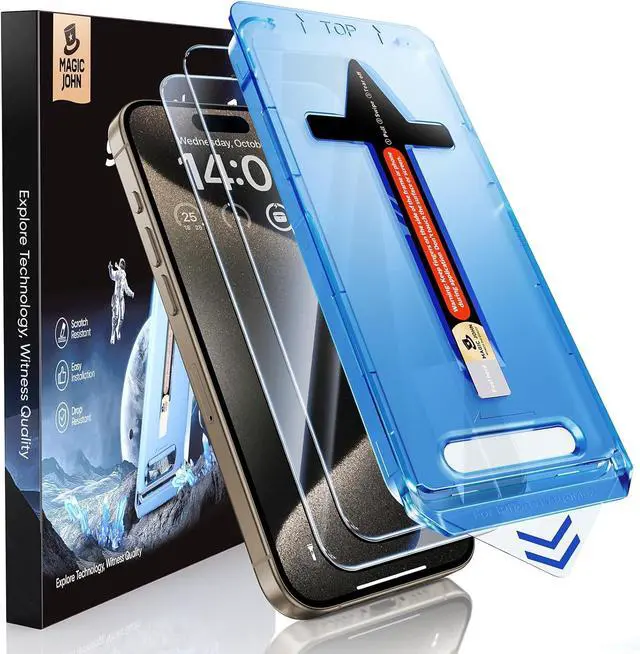 [Automatic Dust Removal Tech] Just cover and pull the screen protector automatically aligns and takes away the dust. No more worrying about bubbles and dust. Please watch our Dust-Elimination Installation video tutorial before installing. [Speaker Dust Cover] The speaker dust cover has alloy material waterproof and dust-proof will not reduce the volume of the speaker. [Screen Protector Compatible with iPhone 15 Pro Max 6.7 ] Specially designed ONLY for iPhone 15 Pro Max 6.7 100% touch accurate. Not compatible with any other iPhone models. [Anti-Fingerprint] Magic John tempered glass screen protector for iPhone 15 Pro Max 6.7 is finished with oleophobic coating to against oil residue from fingerprints from long-term use.