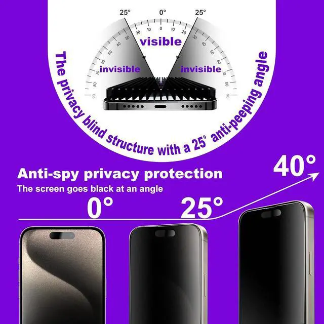 Privacy Protection: This iPhone 15 pro matte privacy screen protector combines advanced 25°anti-spy technology with an anti-glare matte finish to safeguard your privacy in public. It effectively blocks side views reduces glare and reflections and resists fingerprints water and dust. Enjoy crystal-clear visibility ultra-responsive touch and a smooth bare-screen experience with zero lag-perfect for subways buses planes and other crowded spacesAnti-Glare