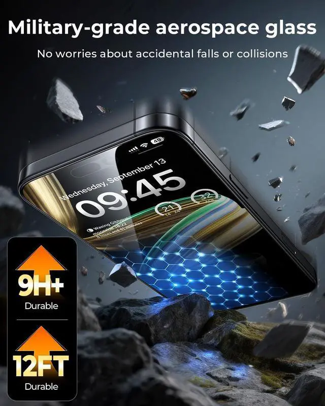 10X MILITARY ENHANCED PROTECTION: The iPhone 16 Pro Max screen protector tempered glass is using double ion-exchange increases ultra-impact protection thats up to 4X stronger than traditional tempered glass protectors and effectively protects the entire phone screen from compression (under 45kg) or other impacts.