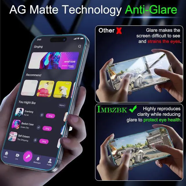 [Auto-Dusting Removal Installation] Includes everything you need with innovative automatic positioning dust removal and absorption technology making the installation is just effortlessly easy in seconds. The installation tool is exclusively designed for iPhone 17 Pro Max 6.9 inch it will help you to install screen protectors without air Bubbles or imperfections even if you don't have any experience. Silky Smooth Feel & Smudge Resistant: IMBZBK's matte screen protector uses 10th generation of AG ultra-fine frosted technology combined with a nano-level oleophobic coating to double the smoothness. It effectively blocks 99% of oil and fingerprints. Whether you're gaming watching videos or browsing content It remains smooth and effortless to operate even when your hands are sweaty making it the professional choice for gamers who pursue the ultimate experience.