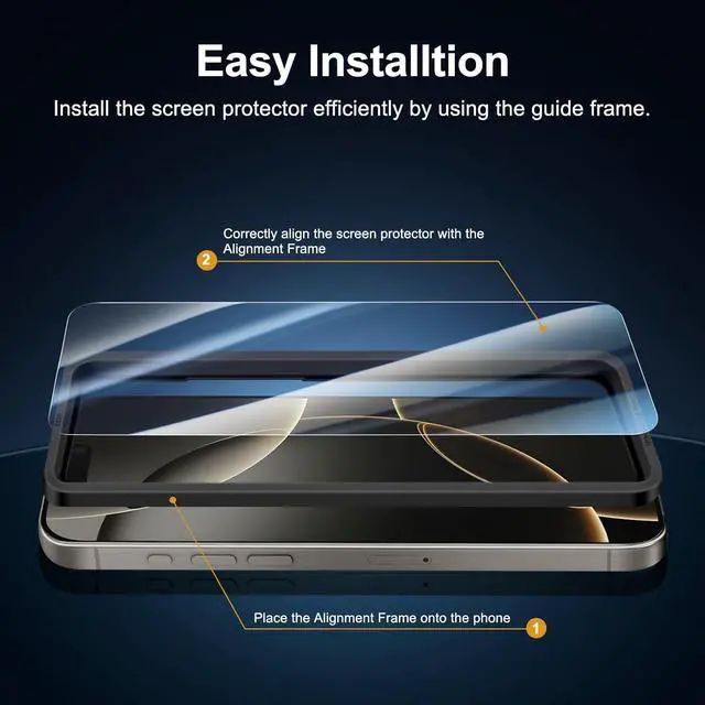 Oleophobic: it has an oleophobic coating that prevents fingerprints and other contaminants making the film easy to clean. Dust-free no fingerprints a push-button too easy bubble-free installation. NEW'C Tempered Glass Screen Protector for iPhone 16 Pro ( 6.3 inches).