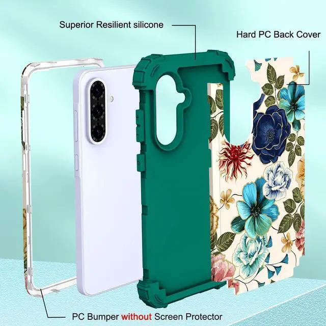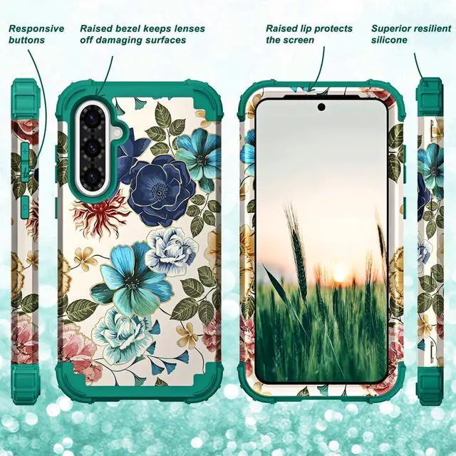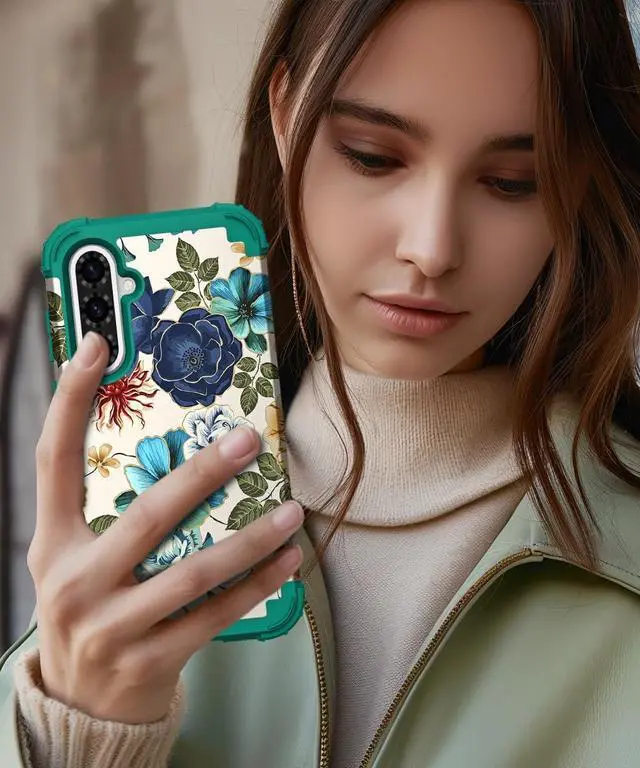 Specially designed for [ Galaxy A36 5G] & [ Galaxy A56 5G] with 6.7 display 2025 releaseHybrid dual-layer construction: hard plastic outer case+shock absorbent silicone rubber inner case resist accidental drops and fallsThe unique and beautiful teal blue flowers design makes your phone look stylish amd even more attractiveRaised bezels protect screen from scratches and facedown impacts. Reinforced rubber corners aborb impacts to reduce possibility of shattersPrecise cutouts allow easy access to all features and buttons