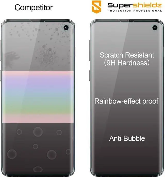 Compatible for: Galaxy S10 ( 6.1 inch display model only)Note: This protector has a circular adhesive around the fingerprint scanner area. The visible circle in the fingerprint area is to improve fingerprint sensitivity. After application gently push out any bubbles around the circular fingerprint scanner area. [Fingerprint ID] re-scan your fingerprint after application and adjust touch screen sensitivity. 2.5D rounded edge glass for comfort on the fingers and hand. 99.99 % HD clarity and maintains the original touch experience. Hydrophobic and oleo-phobic coating to reduce sweat and reduce fingerprintsInclude 2 pcs tempered glass screen protectors