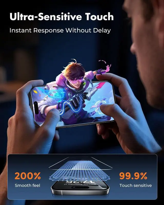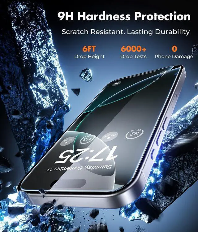 [Military-Grade 9H Tempered Glass Protection] Built with aviation-grade glass and reinforced through a 4-hour 400°C thermal tempering process our screen protector delivers outstanding durability and superior scratch resistance to guard your iPhone 16 Pro Max. [Anti-Fingerprint Coating for Long-Term Clarity] Engineered with an electro-crystallized oleophobic coating this screen protector repels fingerprints smudges and oil ensuring your screen stays clean and crystal-clear even after extended use. [Ultra-High Definition Transparency] Crafted from high-aluminosilicate glass with over 93% light transmittance this protector preserves the screen's original brightness and color fidelity - providing a smooth true-to-life viewing experience. [Camera Lens Protection with Night-Shoot Enhancement] The included lens protectors feature advanced AR seamless fusion technology anti-glare coating and an upgraded NightShoot ring.