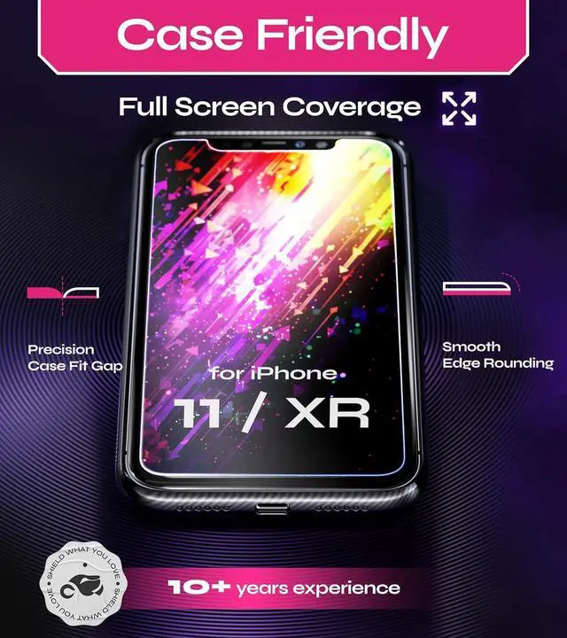 XRUltra Resistant: Military-Grade Tempered Glass offers unmatched Shatterproof and Scratch-Resistant Performance; ideal for iPhone Screen Protector 11 / XR and Tempered Glass for your iPhone 11 / XR for Ultimate Protection9H Nearly Diamond-Like Hardness Screen Protector for iPhone 11 XR to Completely avoid Shattering Cracking and Scratches. The High-Quality Oleophobic Coating keeps your Screen Fingerprint-Free Air Bubble-Free and Dust-FreeHD Ultra-Clear Transparent and 3D Touch Responsive for your iPhone 11 and iPhone XR Glass Screen Protector for a Natural Browsing Experience. Maximum Coverage of the Screen's Flat Area leaving out the Rounded Corners for Compatibility with most Cases Ease and Durability of InstallationEasy Install with Pre-Installed Glass - With the pre-installed Glass Screen Protector you can enjoy a Perfect Bubble-Free Application. Simply peel off the sticker place it on your phone using the tray and press.
