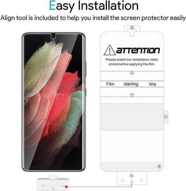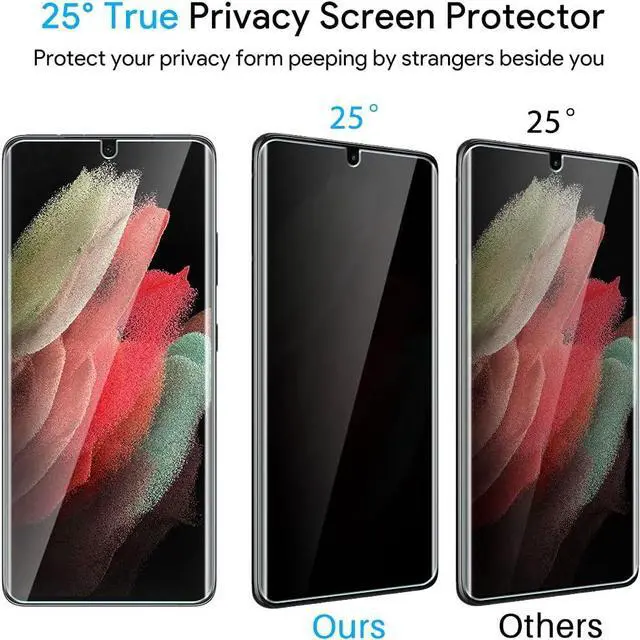 Compatibility - Include 2 Pack Flexible Soft TPU Privacy Screen Protector & 2 Pack Tempered Glass Camera lens protector only for Galaxy S21 Ultra 5G 6.8 - inch Not for any other modelsPrivacy protection - Made from High-quality privacy glass screen protector Privacy Screen Protector keeps your personal private and sensitive information unreadable from strangersMaximum Coverage - Flexible TPU screen protector will fit your screen perfectly. It designed to offer the maximum amount of coverage for your phone's screenMaterial - High-permeability soft acrylic glue to restore the screen color clearly. Self-repairing small scratches and bubbles automatically within 24 hoursEasy Installation - Please watch our installation guide video before applying the screen protector Provide an align tool to help you put the screen protector on perfect No need to worry about aligning the screen