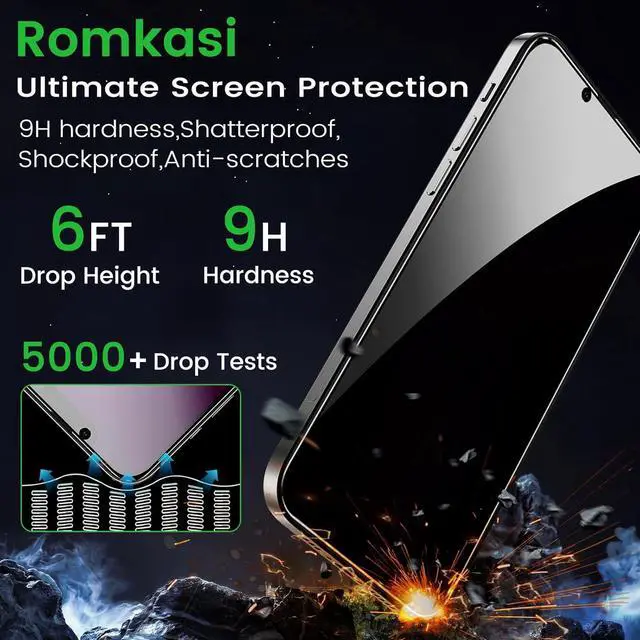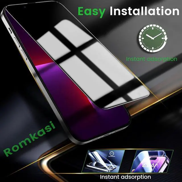 Note: When using the privacy protector the brightness of your phone screen will decrease It is recommended to increase the brightness when using it. Sensitive Touch 0.33 mm ultra-thin privacy screen maintaining the same responsiveness and touch experience as a naked phone. It also ensure 99% retention of the original ultra HD picture quality. Screen protector is treated with a plasma oil repellent coating effectively preventing fingerprints caused by sweat and oil stains. Night Shooting Function The camera lens protector adopts the new technology of seamless integration of augmented reality with light transmittance and night shooting function without the need to design the flash hole position when the flash is turned on at night the original quality of photos and videos can be restored. Premium After-Sales ServiceRomkasi Committed to providing a better shopping experience. If you accidentally order the wrong size fail at installation or encounter any other issues please contact us we will provide you with satisfactory service within 24 hours. (Replacement no need to apply for a return and no fees required. )