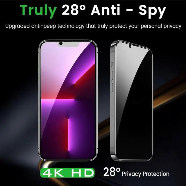 Compatible with iPhone 13 include 3 Pack privacy screen protectors + 3 Pack Tempered Camera Lens protectors only for iPhone 13 not for any other models double protection screen scratches resistance breakage dust oil and fingerprints. Excellent Privacy Protection This iPhone 13 screen protectors made of 9H military blast-resistant glass realizes 28° super privacy function. It can effectively safeguard your privacy from people near you who may be peeking.