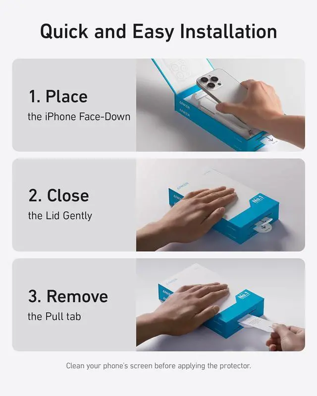 Flash: No more installation headaches. This screen protector seamlessly attaches in a few quick steps for a perfect fit.