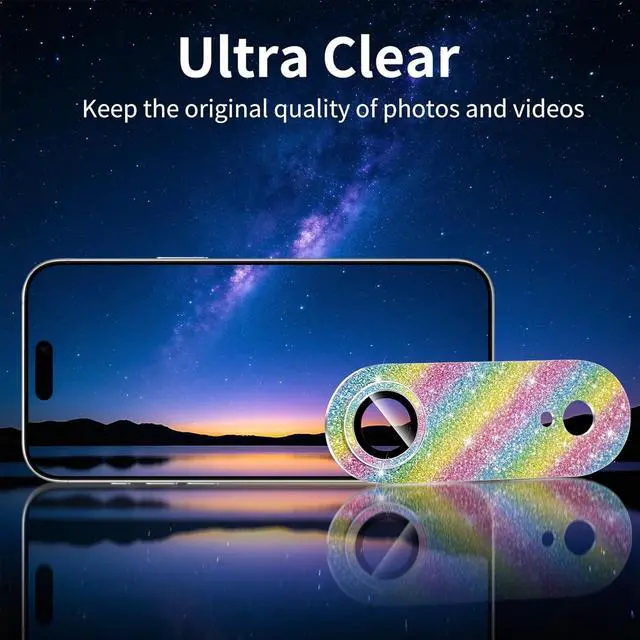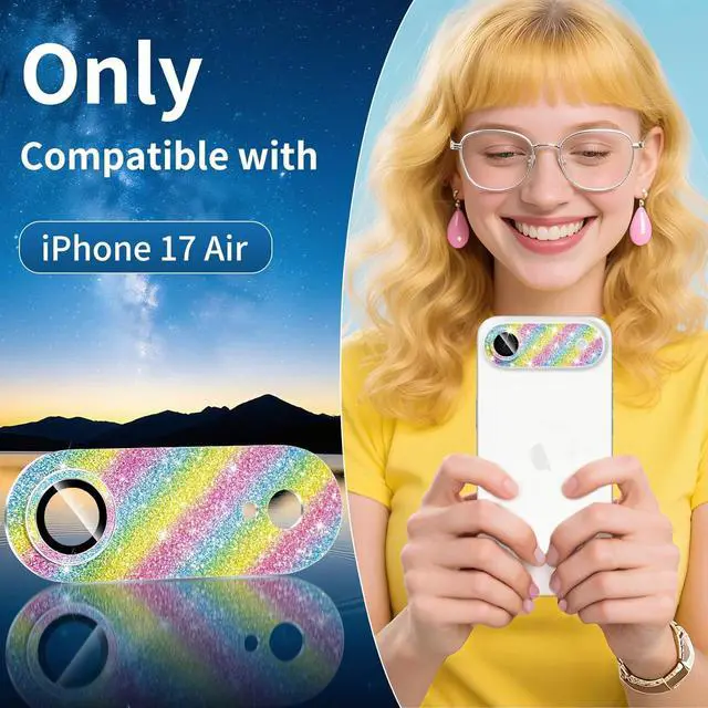 Compatible with iPhone Air Not compatible with other models. Made of 9H tempered glass fully protect your lens from damage and scratches. The adhesive is sticky firmly to the lens surface don't worry about falling off. 9H tempered glass is highly transparent. No influence on your phone's original amazing image performanceDesigned with sparkly rhinestones shining in the sun eye-catching and complimentary. perfectly for women girls. Different color lens protector to meet your needs. Super easy to install no tools needed just align the protector with phone lens and press it securely.