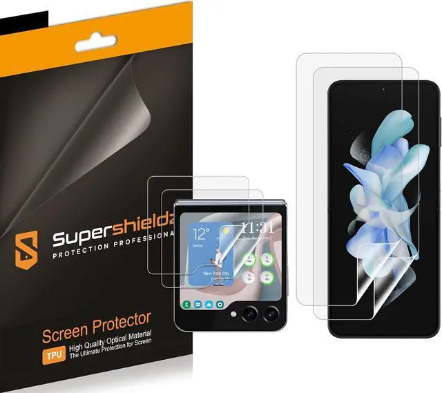 • Supershieldz (2 Pack) Designed for Galaxy Z Flip 5 (2 Main Screen and 2 Front Screen) Screen Protector High Definition Clear Shield (TPU)