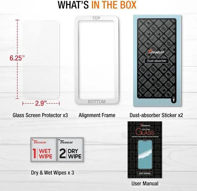 Super-Slim: Premium tempered glass screen protectors are ultra-thin high-quality and extremely protective making them the all-around go-to protector for iPhone 2021. Anti-Scratch Surface - A durable and reliable anti-scratch surface will help prevent scratches to the screen during daily-wear-and-tear minor or accidental drops and even tight pockets. Keep the screen free from scuffs and scratches. Face ID Compatibility - Fully supports full frontal face id compatibility coupled with the rest of the latest iPhone software and premium functionality that is exclusive to the series. Experience full screen protection with a powerful protector that is compatible with all iPhone features. Special Screen Coating - A specialized dual screen coating for elimination of oils sweat fingerprints and liquids on the screen. Both oleophobic and hydrophobic coatings help keep the screen clean and pristine at all times.
