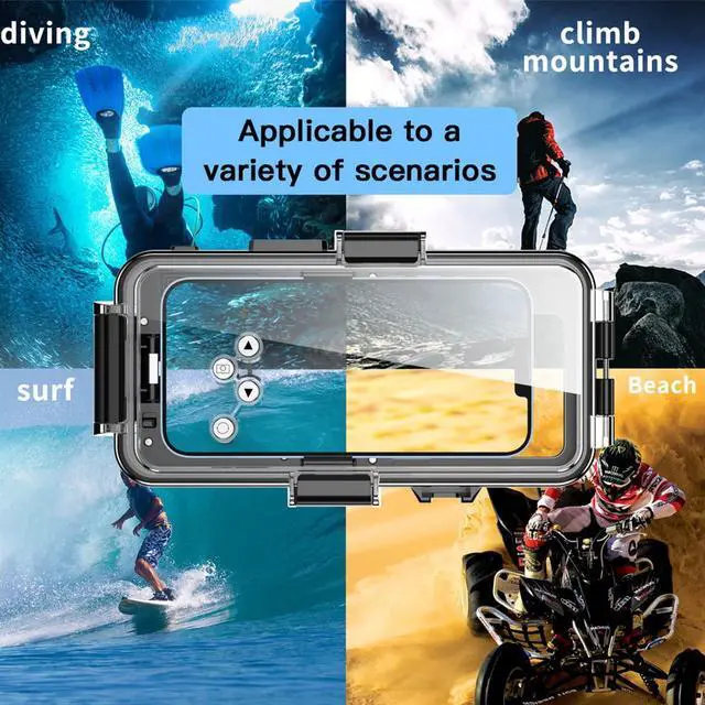 Professional Design for iphone Series --- Specially designed for iPhone 7 Plus/8 Plus/XS max/11 Pro max/12 Pro max/13 Pro max/14 Pro Max/14 Plus/7/8/SE2/SE3//11 Pro/12 Pro/13 Pro/14 Pro/X/Xs/Xr/11/12/13/14/12 Mini/13 Mini.which fits perfectly and seals tightly. Accurate size&Perfect match, no jamming, no looseness. Provides ultimate protection for your iphone during extreme outdoor activities, deep-water diving, surfing, snorkeling and other water sports activities.
