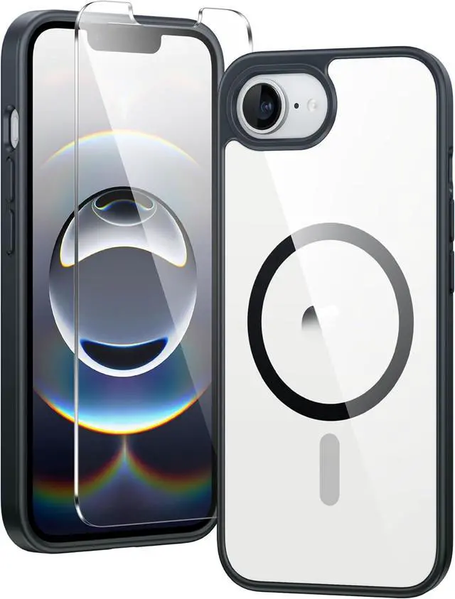iPhone 16e Case Clear: Magnetic Phone Cases with Screen Protector Compatible with Magsafe Slim Anti Yellowing Rugged Shockproof Protective Transparent Cell Phone Cover (Black)