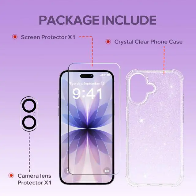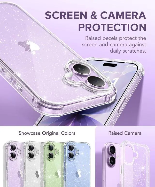 [Long-lasting Glitter & Anti-Yellowing] This iPhone 17 glitter case is made of hard PC backplate and soft TPU frame, maintains crystal-clear clarity for the long haul. The embedded crystal glitter will never peel off and stay shiny, giving your case a long-lasting clear glitter