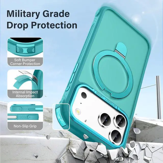 [Strong Magnetic Compatibility for Seamless Tech Integration] Precision-engineered with aligned MagSafe magnets this case for iPhone 17 Pro seamlessly connects to official magnetic accessories (car mounts chargers etc. ). No alignment hasslesjust snap and go for strong stable wireless charging and accessory pairing. [Anti-Slip Side Grip for Secure Handling] Designed with textured non-slip silicone strips along both sides our iPhone 17 Pro case with magnetic stand enhances your gripno more fumbling or accidental drops even with sweaty hands. Perfect for active use or on-the-go lifestyles. [Skin-Friendly Texture & Precision Fit for Premium Comfort] The soft-touch velvety back panel feels luxurious in your hand reducing fingerprints and providing a comfortable non-slip grip.