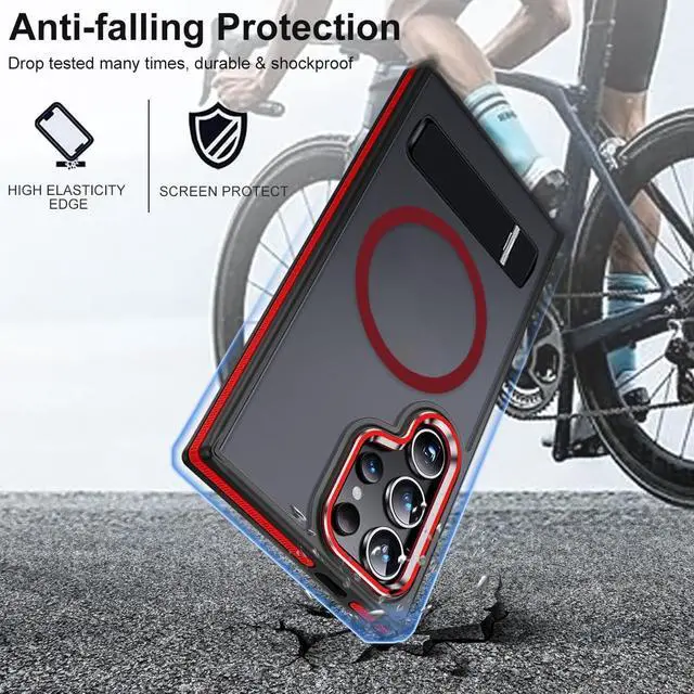 In addition the special color clash design is visually appealing fashionable and pratical catching everyone's eyes. [All Magsafe Compatible with]- More stable and safer to support fast charging this Galaxy S22 Ultra case can automatic adsorption and precise alignment. Meanwhile compatible with Magsafe or other ceritified QI wireless chargers magnetic wallet / card clip car mount and so on. It makes more convenient life with your S22 Ultra. [Mil-Grade Shockproof Protection]- After hundreds of drop tests this S22 Ultra phone case has very excellent drop protection. Fully wrapped soft TPU effectively disperses and absorbs the impact and shock from dropping your S22 Ultra.
