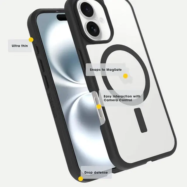 Compatible with iPhone 16The ultra-thin MagSafe iPhone 16 case thats DROP+ drop tested to military standard MIL-STD-810G 516.6M ade with a minimum of 45% recycled content consisting of 100% recycled plasticsHard case with a soft grip and built-in MagSafe magnets that snap to chargers and accessoriesTrusted