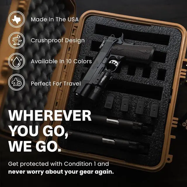 Condition 1 16 Medium Waterproof Hard Gun Case Model 179 4 Pistol Slots 12 Mags TSA Approved Lockable Firearm Storage Case IP67 Waterproof Made in USA 16x13x6.86