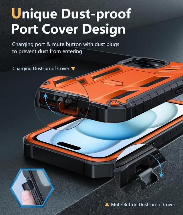 Cover Design: This Case for iPhone 15 is designed with Dust-proof Port Cover which protects your phone's charging port and mute button to prevent dust from enteringCase iPhone 15