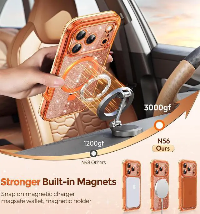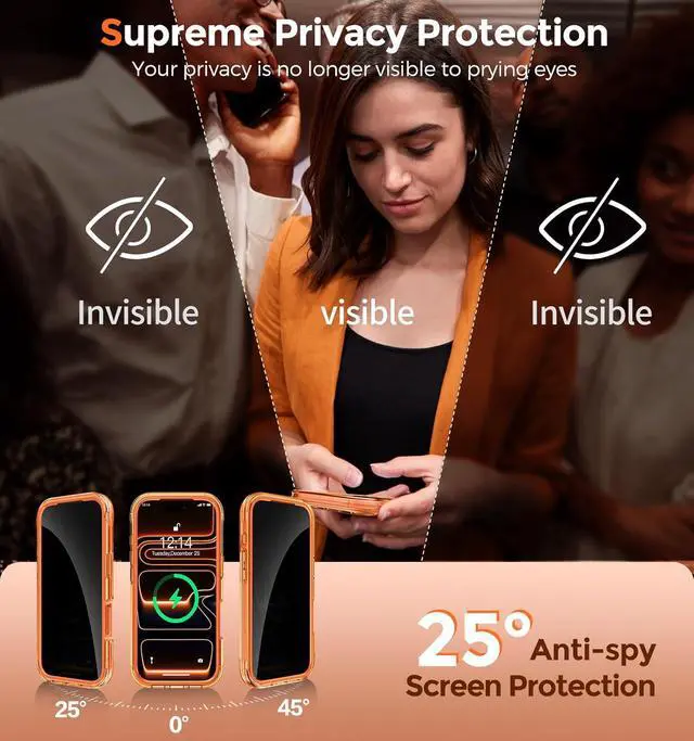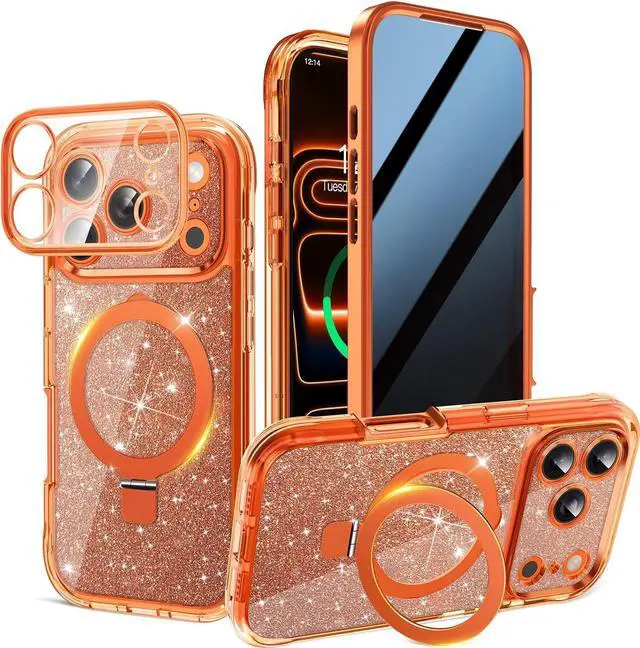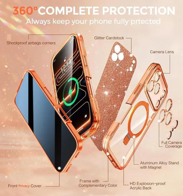 Ultimate One-Step Solution Ditch the Clutter! Unlike basic cases that offer basic protection at best our iPhone 17 Pro Max full boday case delivers 360° defense plus 4 premium upgrades: a built-in privacy screen magnetic kickstand full camera protection Plus DIY glitter customization. This complete setup eliminates the need for separate purchases providing unparalleled privacy hands-free convenience compatible with MagSafe and personalization that basic cases simply cannot match! True-Color Clarity & Lifetime Anti-Yellowing Experience true-to-life color display with our advanced AR-coated iPhone 17 Pro Max case Clear featuring 99% light transmittance for superior clarity. The seamless one-piece construction ensures perfect color consistency from backplate to camera rim. The upgraded anti-yellowing formula actively resists UV radiation fingerprints and daily stains guaranteed to stay crystal clear over time. Personalized DIY Glitter Cardstock & Flawless Camera ProtectionOur upgraded iPhone 17 Pro Max case with screen protector included a unique DIY glitter cardstock allows you insert the diamond glitter card for a sparkling effect or remove it to showcase the crystal-clear background allowing you to switch up your style instantly. The full-coverage raised camera guard provides robust protection against scratches and impacts with zero interference to the lens flash or image quality. Advanced Privacy ProtectionOur iPhone 17 Pro Max case privacy is engineered with a patented micro-louver technology privacy screen to completely block side viewing angles securely shielding your sensitive information from prying eyes.
