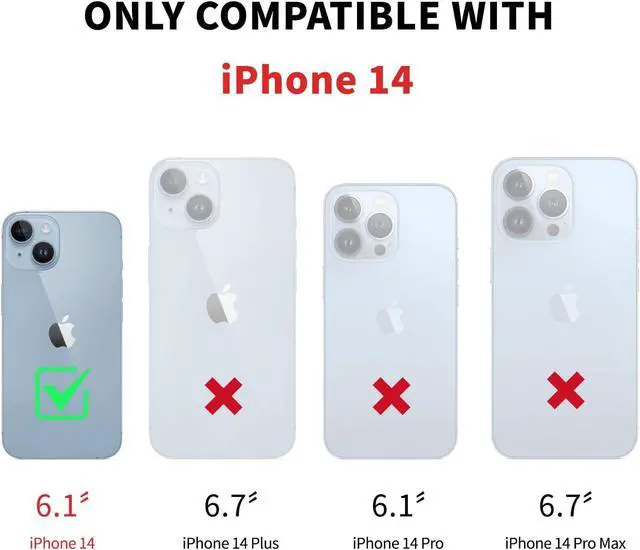 [COMPATIBILITY]---Only compatible with iPhone 14 6.1 NOT FIT iPhone 14 Pro 6.1 /iPhone 14 Plus 6.7 /iPhone 14 Pro Max 6.7. Other Choices with phone case wlecome to click on the one next to the title [Visit the DJDUCK Store][Credit Card Anti-Theft Swipe Function]---This RFID Blocking leather wallet case is designed to protect your card information. The RFID Shielding Technology to block unauthorized access. Many cards including credit debit and ID cards contain an RFID chip. (This chip can be read by an RFID reader from up to 10 feet (about 3 meters) away without any physical contact.