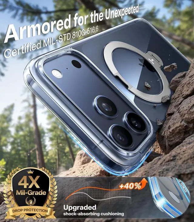 No more slidingyour magnetic wallet will stay securely attached with the case compatible with iPhone 17 Pro Max magnetic case. Employing exclusive Halbach-Mag technology it boasts 40% stronger magnetic force (18N) than ordinary 17 Pro Max magnetic phone cases for a stable connection[Military-Grade Protection --- 4X Drop Tested] Gone are the days of thick and bulky cases. This slim shockproof case snaps on snugly without adding bulk and absorbs 40% more impact force with its advanced cushioning structure. Raised bezels around the camera and screen add extra defense against scratches while certified 4X MIL-STD drop protection protecting your phone from scratches and drops[Premium Craftsmanship --- Built to Last] Made from a refined blend of hard polycarbonate and flexible TPU this case compatible with iPhone Pro Max 17 is built to offer you the premium experience.