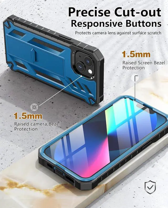 Body Protection: This Armor Case Four-corner grooved airbags unique shock absorption design more comprehensive protection of the fragile parts for the smartphone. Raised lips keeps camera lifted to prevent your lens from shock collision and scratch. Precise cutouts for speakers camera and other functional ports allow you to access all ports and controls easilyFor iPhone 13/14/15/16e Phone