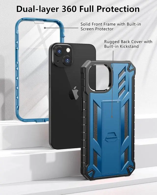 Dual-layer Protection: This iPhone 13/14/15/16e Case features a front built-in screen protector and a durable back cover working together to provide 361-degree all-around protection for ultimate defense against impacts drops and scratchesBuilt-in