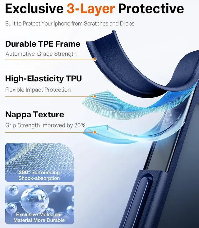 Automotive-Grade Material: Crafted with high-toughness TPU+TPE automotive-grade material this protective phone case for iPhone 17 Pro features a 2.5 mm raised camera bezel and reinforced screen edges to shield the newest lenses. Built for lasting durability it keeps your phone safe whether its dropped or tossed on a deskso your screen and lenses stay crystal clear.