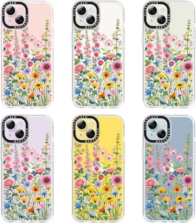 • Case for iPhone 13 Case and iPhone 14 Case [Crashproof 11FT Military-Grade Drop Protection] [Anti-Yellowing & Anti-Peel] Clear Shockproof TPU Bumper Slim Phone Case Cover-Wildflowers