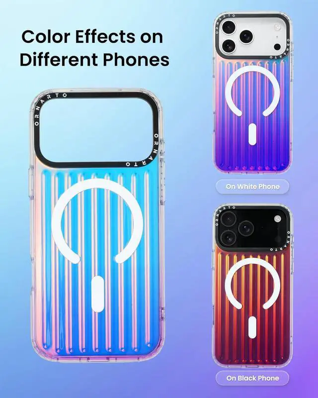 Illusion Stripes: Crafted exclusively for iPhone 17 Pro case this new design truly stands out. Captures the color-shifting magic of a prism through advanced IMD technology. What's more its internal stripe layer creates a dynamic 3D light effectwith every turn the colors change unpredictably making every angle a new experienceViolet