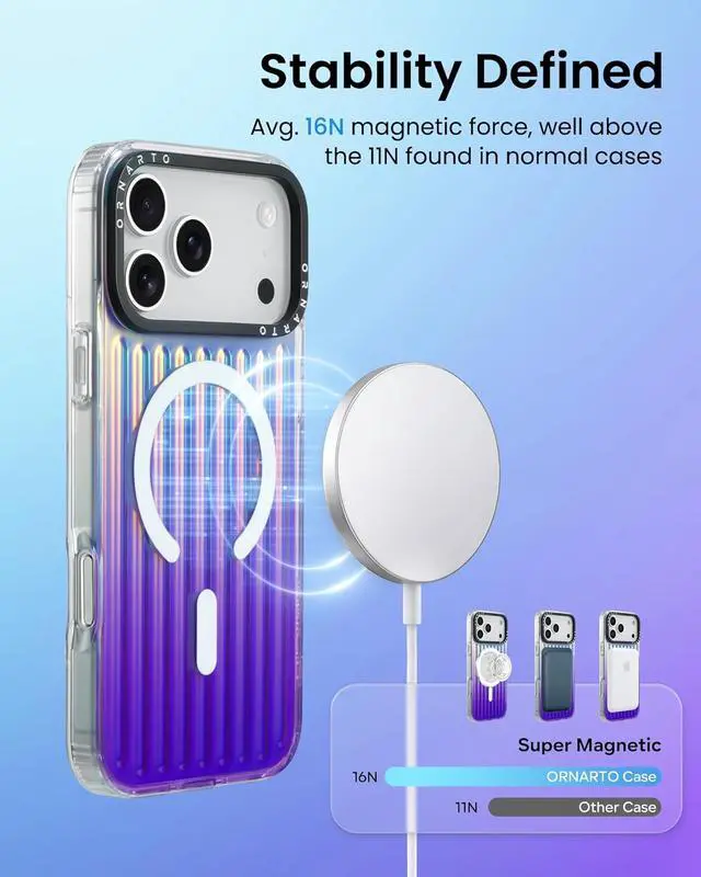 On Stay On: It's not just about looks! The built-in magnets in phone case for iPhone 17 Pro have been significantly upgraded delivering a magnetic force of 16Nsurpassing the standard 13N found in market. Your MagSafe accessorieswallets grips chargers and moresnap on securely and stay firmly in place.