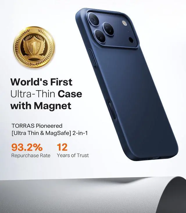 MagSafe Charge Faster Snap Securely: Experience lightning-fast full-speed 20W+ wireless charging with TORRAS ultra-thin magnetic case for iPhone 17 Pro. Powered by our patented Halbach Array it guarantees perfect magnetic alignment for effortless charging on any Qi or Qi2 charger. Attach seamlessly to compatible with MagSafe accessories like wallets stands or car mounts for unmatched convenience. Fast. Secure. Effortless. Sleeker Magnetic OriginFit-Mag In The World: A true wonder of the Case World. Only 0.03 inches 0.63 oz this TORRAS for iPhone 17 Pro thin case is nearly invisible preserving the sleek lines of your phone. Crafted for those who appreciate the sleek lines of their new phone and wont settle for bulky cases that compromise its elegant profile. Pocket-friendly it effortlessly slips in and out restoring the original feel of a slim cellphone. Never fades or discolors like clear cases. Daily Protection & Confident Grip 2025