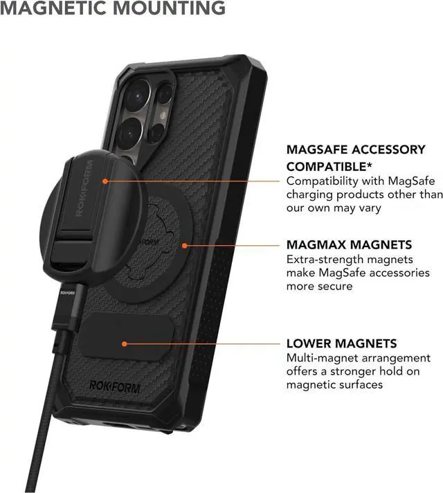 SECURE: Extra-strength mounting on magnetic surfaces with magnetic plug installedPROTECTS: Rugged design with 6-foot military grade drop protectionEXTRA