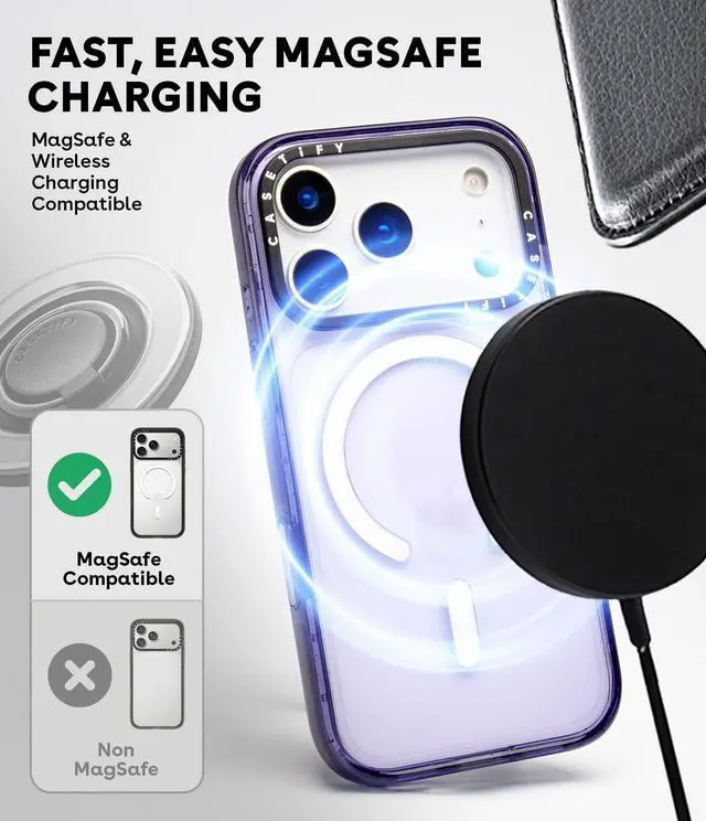Compatible with iPhone 17 Only ( 6.3 Screen Size) 8.2 ft. drop protection (4x MIL-STD-810G)Side Socket- For easy charm / strap attachmentIntegrated camera-control buttonWireless charging and Magsafe compatible