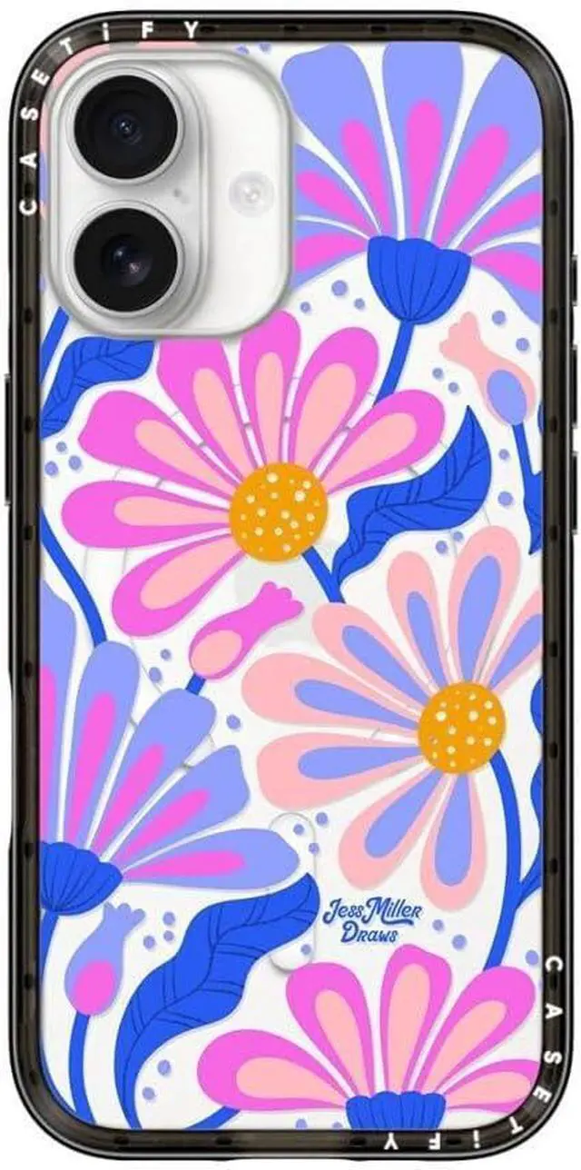 CASETiFY Compact iPhone 17 Case [Slim and Sleek/Compatible with Magsafe / 4 ft. 2X Military Grade Drop Protection] - Mystic Daisy - Clear Black