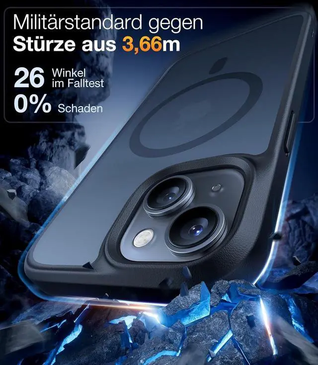 12FT MILITARY-GRADE FALL PROTECTION: Certified by ROHS. This iPhone 14/15 shockproof case has undergone more than 5 000 12FT drop tests with the phone in and the phone is finally intact. Thanks to the upgraded 3rd gen X-SHOCK 360° lens airbag with a tough PC matte back and soft flexible rubber bumper it provides a strong buffer to prevent drops. The tiny design of 1.0 mm lips over the camera and 1.5 mm bezels over the screen prevent the screen and camera from dust and scratches.