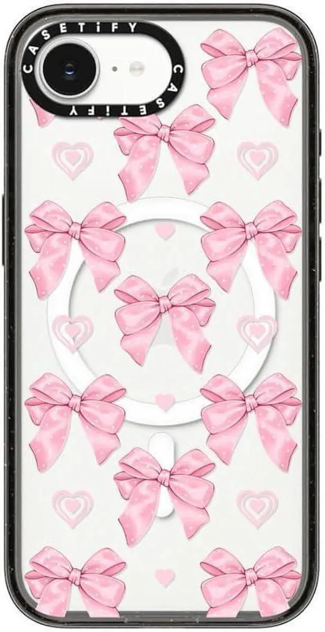 CASETiFY Impact Case for iPhone 16e [4X Military Grade Drop Tested / 8.2ft Drop Protection/Compatible with Magsafe] - Pink Bows - Clear Black