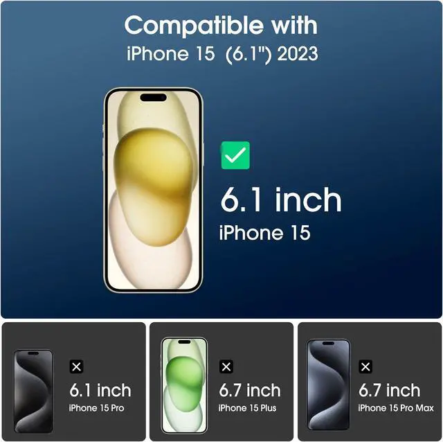 [Screen Protector Compatible with iphone 15 6.1 ] Specially designed ONLY for iPhone 15 6.1 2023. Not compatible with any other iPhone models. [Patented Auto-Alignment Tech] Perfect installation within 30 seconds! The screen protector is embedded in a plastic frame that fits perfectly over your phone. Set the frame on your phone swipe down the middle and done! Watch our Installation Video to see how easy it is to use our Innovative OneTouch Auto-Alignment Screen Protector. [2+2 Pack] iPhone 15 6.1 Screen Protectors two auto alignment tool kits (screen protectors come pre-installed in the auto alignment tool) 2 installation accessory kits + 2 glass camera lens protector.