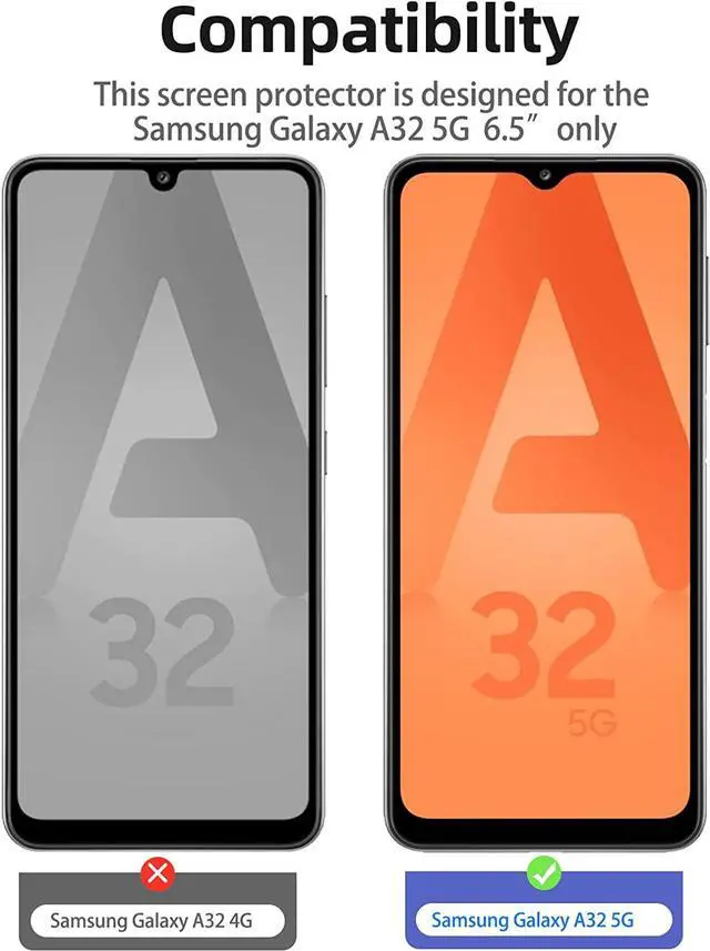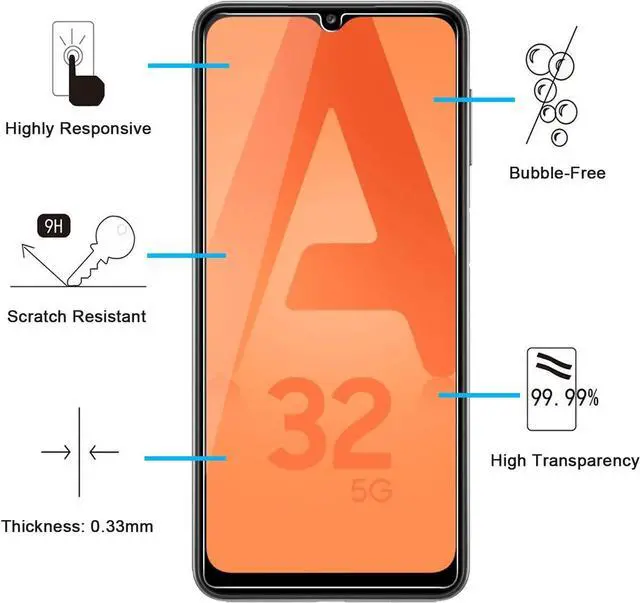 Extremely high hardness: resists scratches up to 9H. High response and high transparency. Dust-free fingerprint-free one-push super easily installation bubble freeNEW'C Galaxy A32 5G Tempered Glass Screen Protector delicate touch: coated on the back with a solid silicon adhesive which makes installation easy and attaches the film firmly so as not to affect the sensitivity of the touch screen