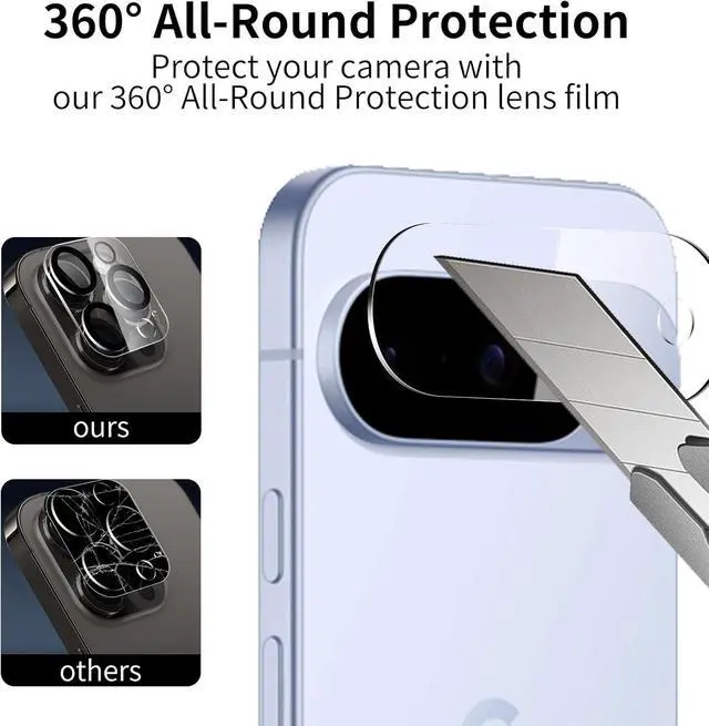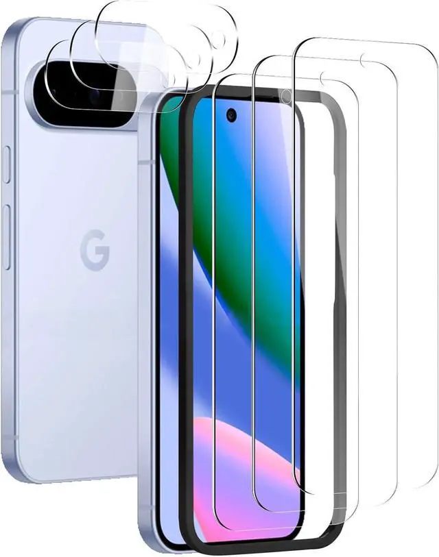 3+3Pack: This product includes 3 pack screen protectors +3 Pack Camera Lens Protector and Easy Installation Frame works for Google Pixel 10 display tempered glass screen protector cleaning wipes dust removal stickers. Featuring maximum protection from scratches scrapes and bump. Follow the simple installation process to avoid air bubbles or misalignment.